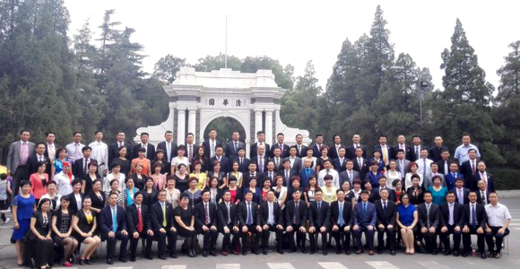 开班仪式后,首期卓越领导人高级研修班全体学员在清华园门口合影
