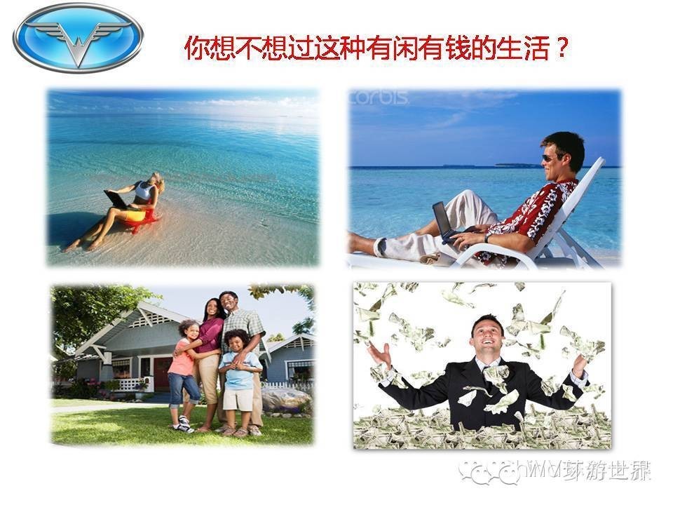 wv梦幻之旅,刚刚进入中国市场的新项目,与十几年前的安利,保险等其他直销一样面临重大机遇!你错过安利,保险等直销行业的早班车,还想错过wv的早班车吗?加入先知先觉的行列!