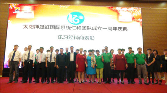 展望未来,伴随着太阳神三五规划、百亿目标大幕的拉开,晟虹国际系统仁和团队通过此次大会也迈出了坚实的一步,吹响了太阳神新的财政年度2016团队奋斗的号角。仁和团队必将伴随着太阳神集团的发展,回归初心,再次创业,整装待发,放下过去的成就,面向未来,取得更大的成绩。