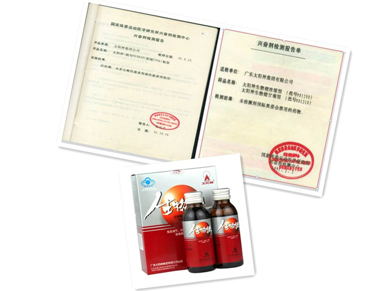 本着对人们健康负责的态度,太阳神公司委托权威性的、国际奥委会认可的国家体委运动医学研究所兴奋剂检测中心对产品进行检测。检测结果为:太阳神口服液未查出雌性激素和雄性激素类物质。