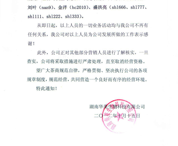 上一篇:诋毁公司造成恶劣影响 华莱取消违规人员经营资格