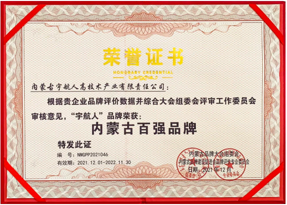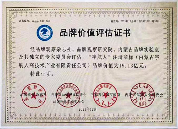 宇航人公司凭借优质的产品、良好的口碑以及较大的社会贡献,再次被评为内蒙古百强品牌,同时宇航人公司被评选为内蒙古品牌建设标杆企业。