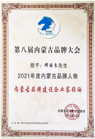 2021年12月29日,第八届内蒙古品牌大会暨“蒙”字标品牌影响力论坛在呼和浩特举行。本届大会以“聚合认证新势能,赋能品牌新发展”主题,由内蒙古自治区发改委、农牧厅、市场监督管理局指导支持,内蒙古品牌建设促进会主办,内蒙古品牌大会组委会等联合主办,大会发布了2021年度“内蒙古品牌价值评价信息数据”和“内蒙古百强品牌价值评价报告”等系列活动,并向获得内蒙古百强品牌企业代表颁发牌匾、证书。