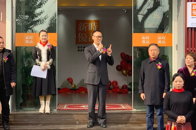 韩春东总经理和当地优秀新时代人一同剪彩,为新时优品在当地的发展拉开序幕。随后,他为新时优品健康管理服务中心送去祝福,阐述了新时优品品牌升级的意义,并希望大家能够抓住机遇,勇攀高峰,百尺竿头,更进一步,再创辉煌。