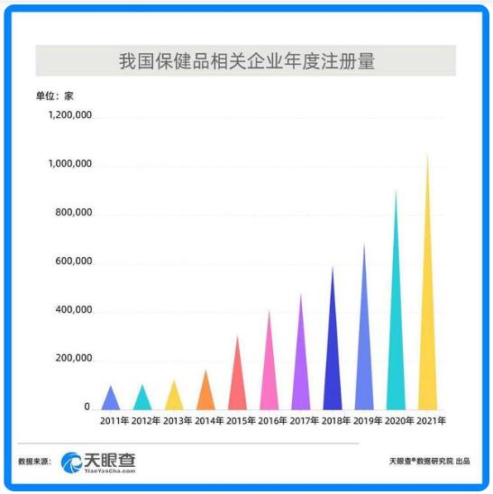 近五年来,我国保健品相关企业(全部企业状态)呈稳步发展态势,年平均增速在30%左右。以工商登记为准,我国2021年新增保健品相关企业超101万家,同比增长30%。地域分布上,依然是山东省新增数量最多,占全国新增总量的18%。