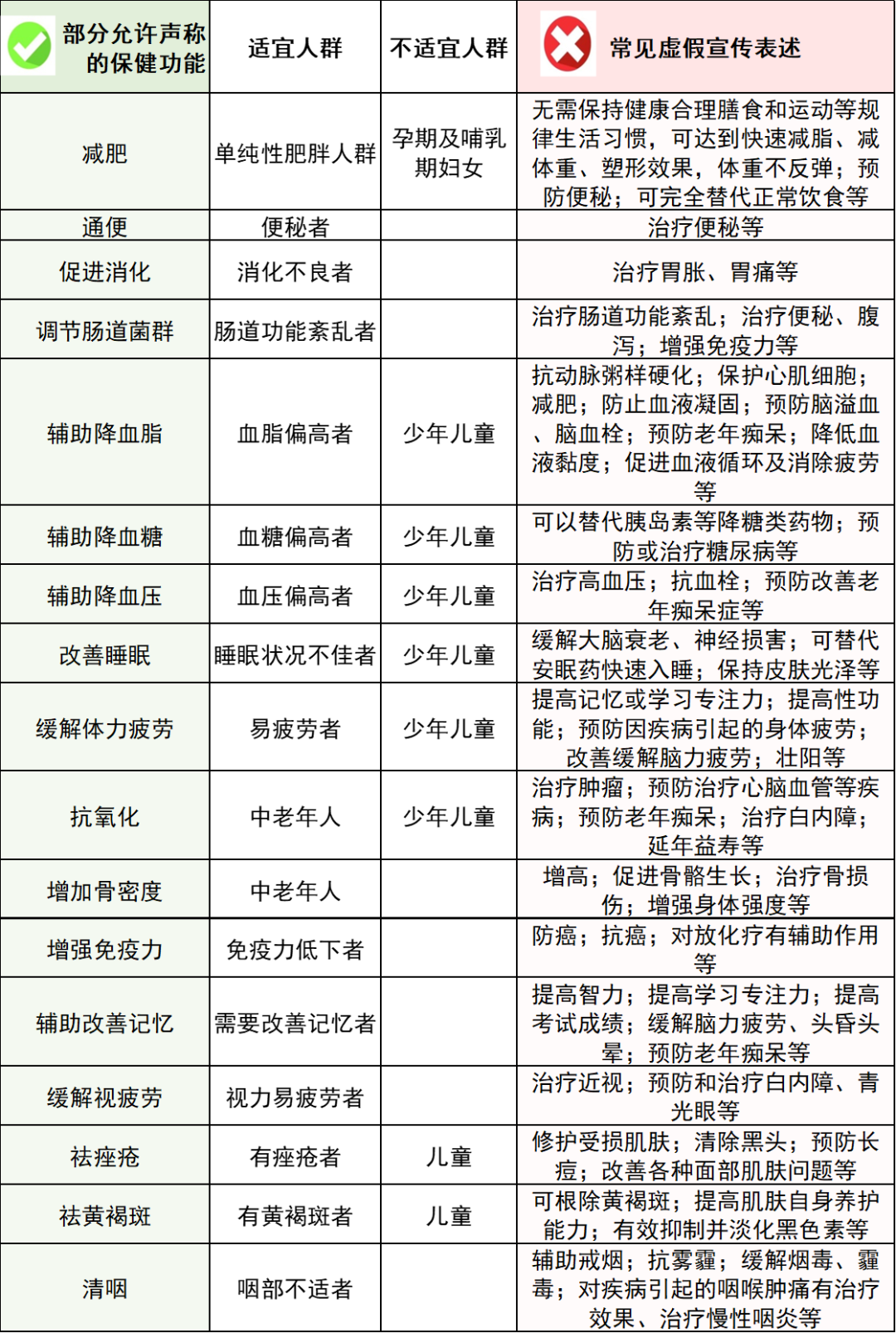 保健食品生产经营者应严格按照注册或备案的保健功能进行标签标识和宣传表述。超出这些功能之外的表述,都属于虚假宣传。