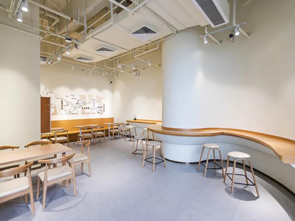 店内装潢选用当代年轻人喜欢的轻中式风,用竹叶绿植作点缀,墙上更挂有竹牌做成的饮品菜单。