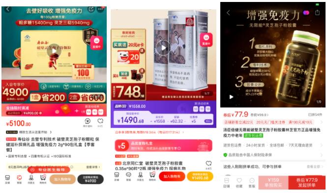 不同电商平台上,不同品牌的灵芝孢子粉售价差距很大