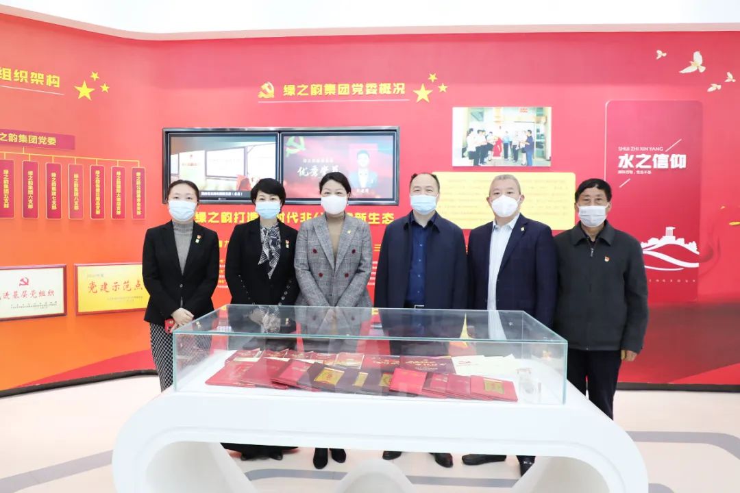 调研组一行首先参观了党建文化教育基地,党委书记刘云就非公党建工作情况向调研组一行作了详细介绍。多年来,绿之韵集团党委坚持构建以集团党组织为核心,以集团工会、公益基金会为主体,打造红色基因塑造的新时代非公党建新生态,在全行业内创建了第一家党建文化教育基地,形成了具有绿之韵特色的非公党建工作品牌。集团党委历年来多次被各级党组织授予“先进基层党组织”、“党建示范点”、“标杆引领先进基层党组织”等荣誉称号。