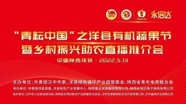 2022年5月13日,在这青春澎湃的五月,中国共产主义青年团100周年到来之际,由共青团汉中市委、洋县绿色循环产业园管委会、陕西省青年电商联合会共同主办,共青团洋县县委、洋县有机产业发展中心、陕西果业贸易集团有限公司、陕西永倍达电子商务有限公司承办,汉中市工业和信息化局、陕西省名特优新农产品质量安全协会、汉中古旱莲有机农业开发有限公司、汉中晶绿农业有限公司协办的“‘青耘中国’洋县有机蔬果节暨乡村振兴助农电商直播推介会”在陕西汉中洋县三馆一中心隆重举行。