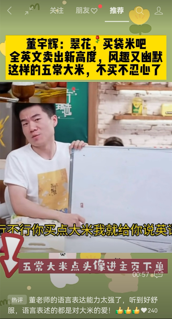 近期,一股营销新风吹进了直播间。新东方的教师们在东方甄选的直播间里火出了圈,董宇辉、顿顿等教师出身的主播们不仅能从阿拉斯加的鳕鱼讲到南太平洋的海鸥,从仲夏的阳光讲到莎士比亚,涉猎历史地理物理化学,还能双语带货,甚至把语法都讲了。