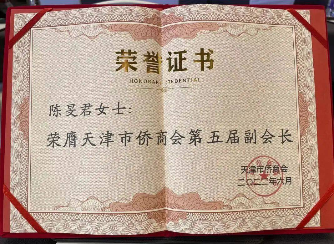 会上,尚赫公司执行长、尚赫公益基金会创办人陈旻君连任天津市侨商会第五届副会长。这也是自2011年起,陈旻君执行长连续11年担任天津市侨商会副会长。
