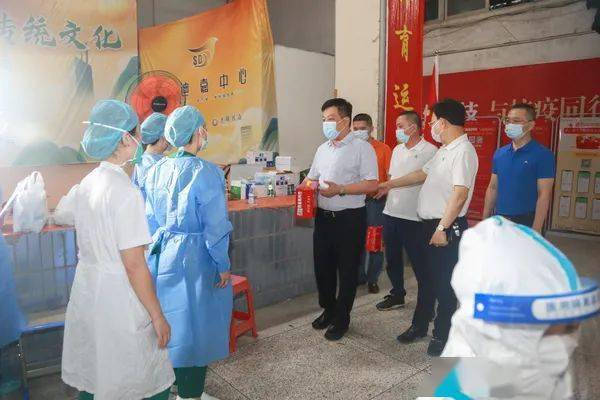 自普宁市进入应急防疫状态以来,康美医院迅速响应普宁市疫情防控工作指令,启动防疫攻坚应急预案,第一时间组建防疫医疗队伍并投入普宁市核酸采样抗疫一线工作,助力当地筑牢疫情防控“壁垒”,全力以赴保障全市人民健康安全。8月11日晚,康美药业董事、总裁刘国伟一行专程前往普宁市上寮学校、塔峰学校等核酸检测点,慰问奋战在抗疫一线的康美医院医务人员。