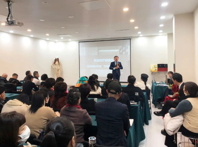 纳宜热疗项目全国招商负责人郭金良先生分享热疗项目介绍、发展趋势、热疗馆招商细则,及集团对于项目的扶持力度,向到场嘉宾阐述项目核心竞争力。