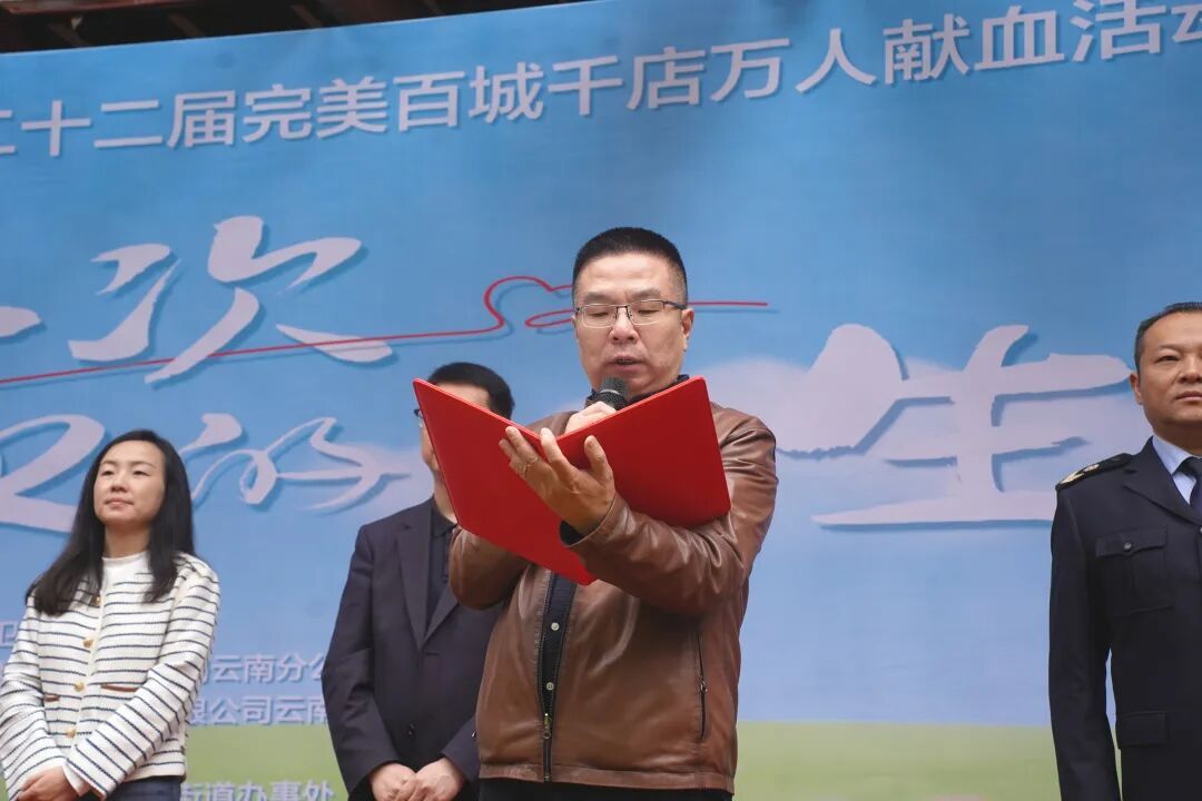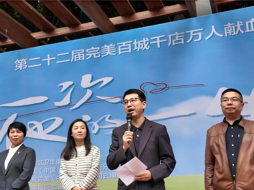 云南昆明血液中心党委委员、副主任魏聪在开场致辞中表示,完美云南分公司是昆明市每年采供血工作中不可或缺的重要力量,为全市团体献血作出了良好示范。他对完美公司的善举给予了高度评价,并致以诚挚感谢。